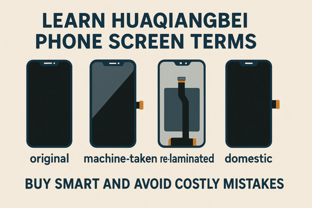 The terms “original” (原装), “machine-taken” (拆机), “re-laminated” (后压), and “domestic” (国产) aren’t just words—they’re survival tools for anyone buying phone screens in Huaqiangbei. Let’s dive into what they really mean and how to use them to your advantage.
