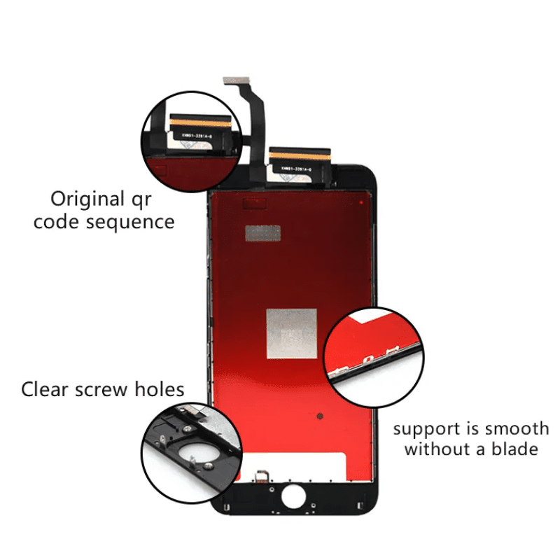 This item Phone 6 Plus LCD screen assembly is available in black and white and includes the LCD screen, digitizer touch screen, and front frame, which means 100% original manufactured and assembled and high quality.