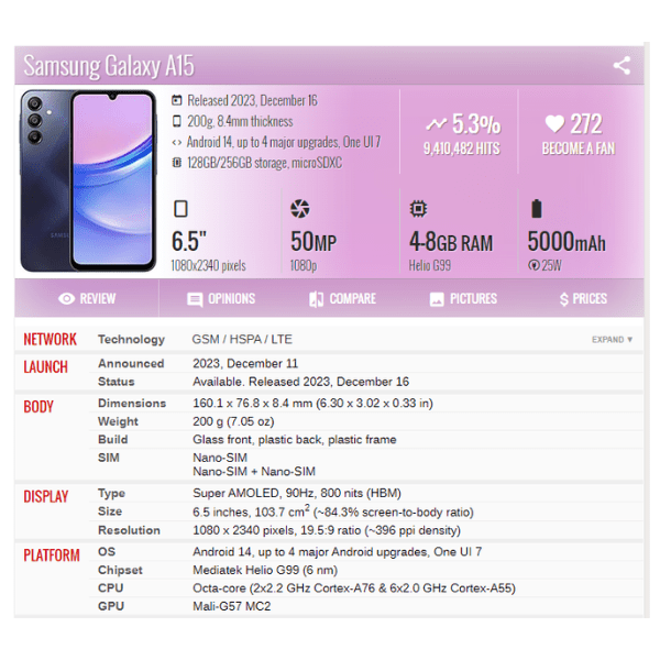 | Phone Model | Samsung Galaxy A15 |