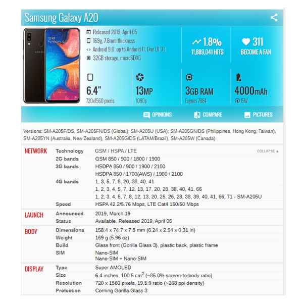 Original Refurbished OLED LCD Display Touch Screen Digitizer Replacement With Frame For Samsung Galaxy A20