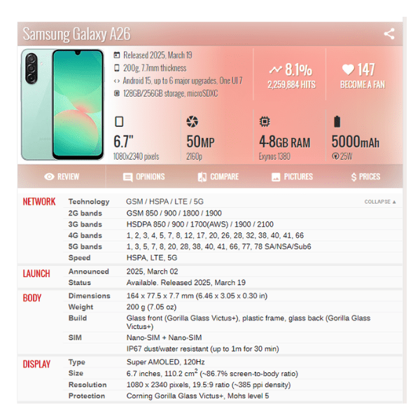 | Phone Model | Samsung Galaxy A26 |
