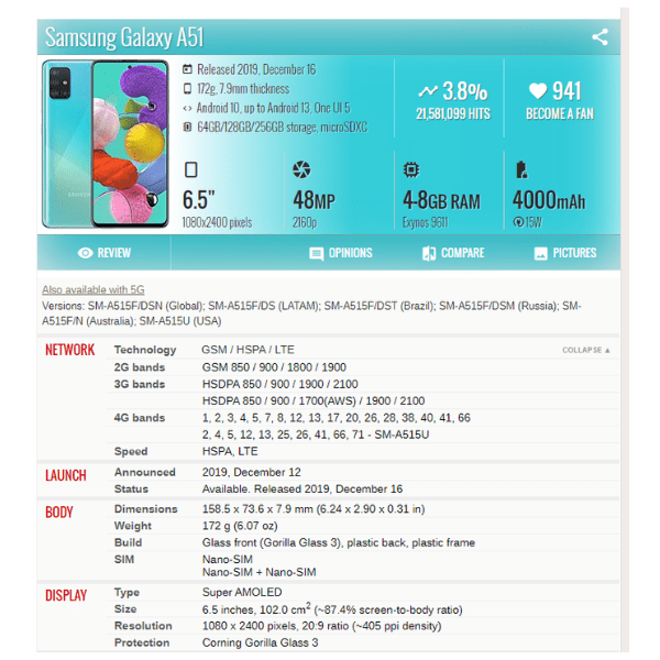 | Phone Model | Samsung Galaxy A51 |