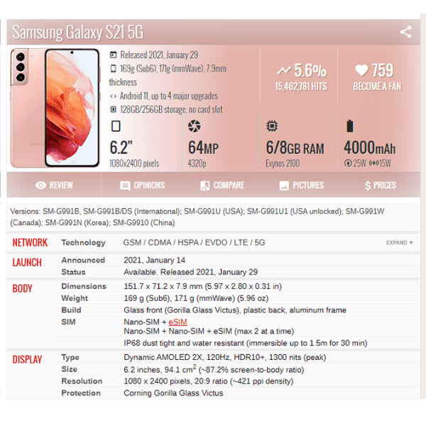 | Phone Model | Samsung Galaxy S21 5G |