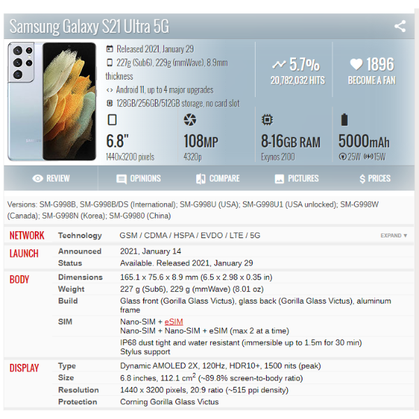 | Múnla Fón | Samsung Galaxy S21 Ultra 5G |