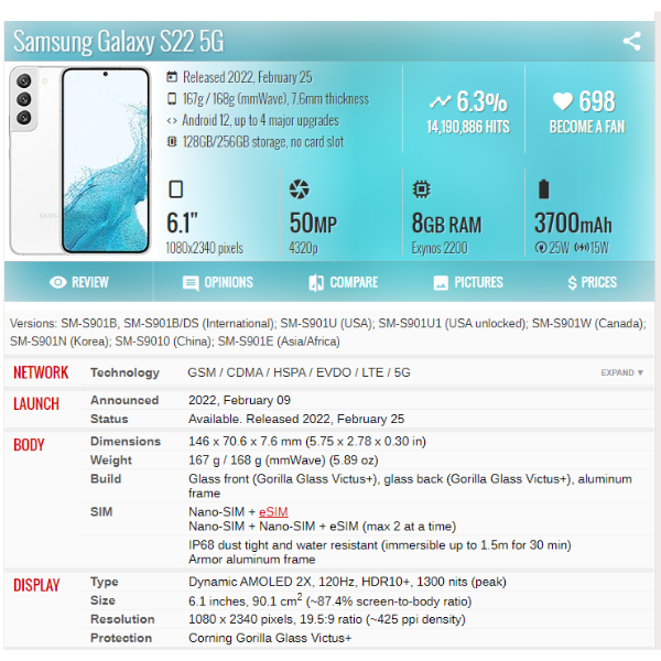 | Múnla Fón | Samsung Galaxy S22 5G |