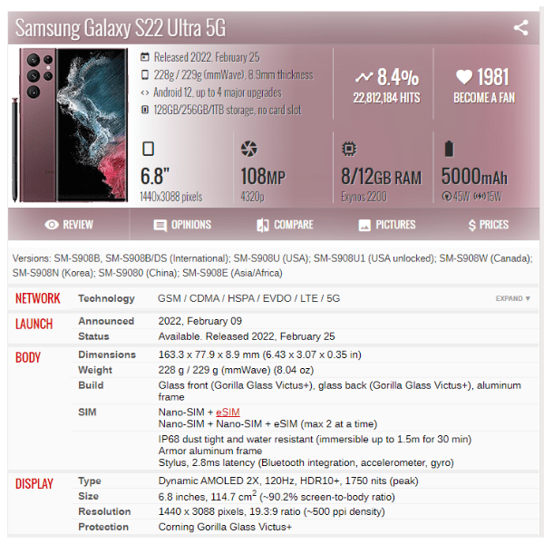 | Telefon model | Samsung Galaxy S22 Ultra 5G |
