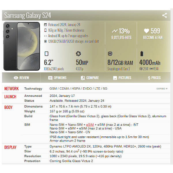 | Phone Model | Samsung Galaxy S24 |