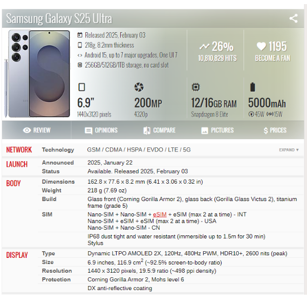 | Telefon model | Samsung Galaxy S25 Ultra |