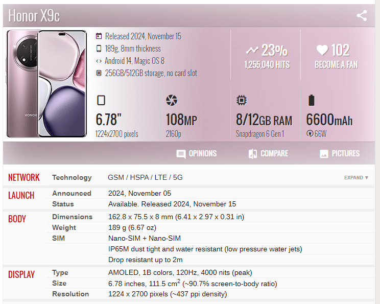 | Phone Model | Honor X9c |