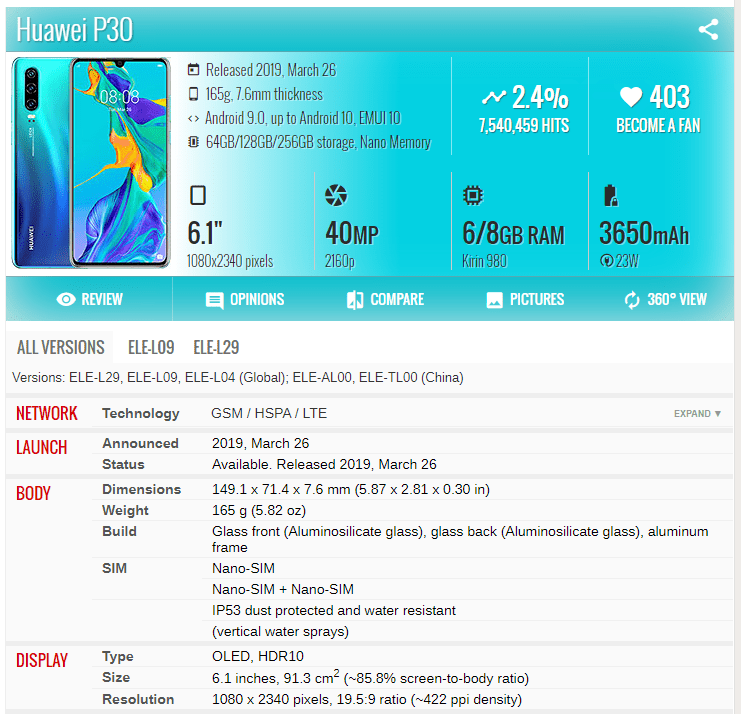 Grade A Quality LCD Assembly Without Frame / With Frame Replacement For Huawei P30