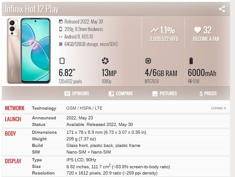 | Phone Model | Infinix Hot 12 Play |