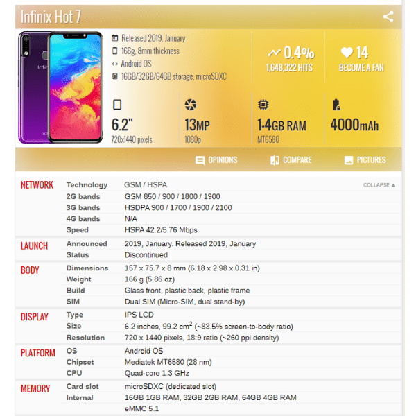 | Phone Model | Infinix Hot 7 X624 |