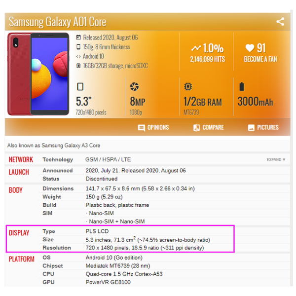 | Phone Model | Galaxy A01 Core |
